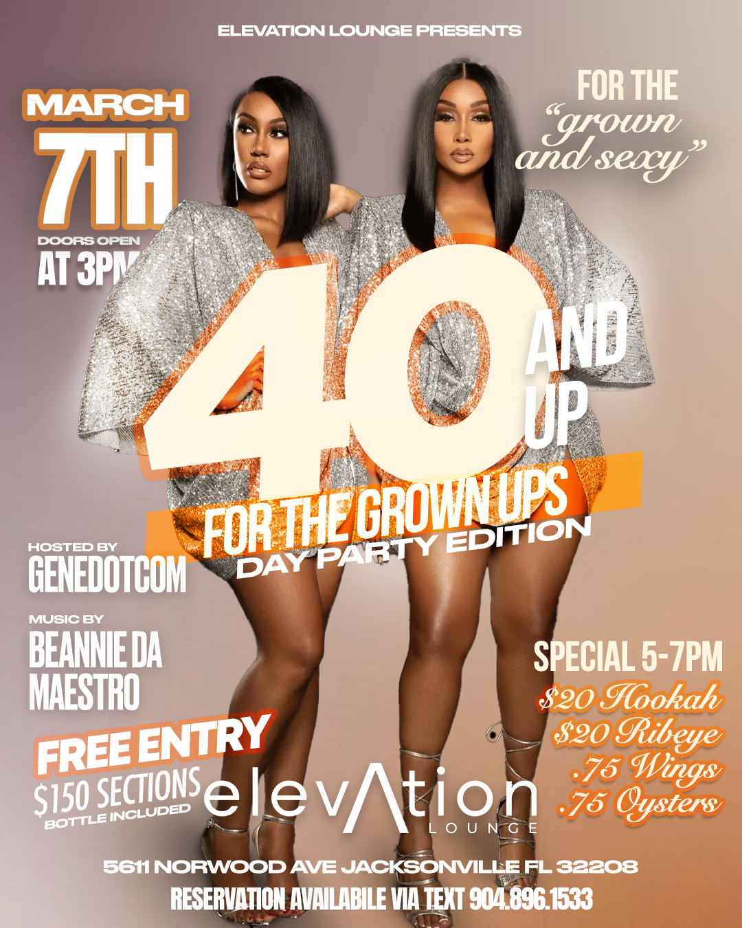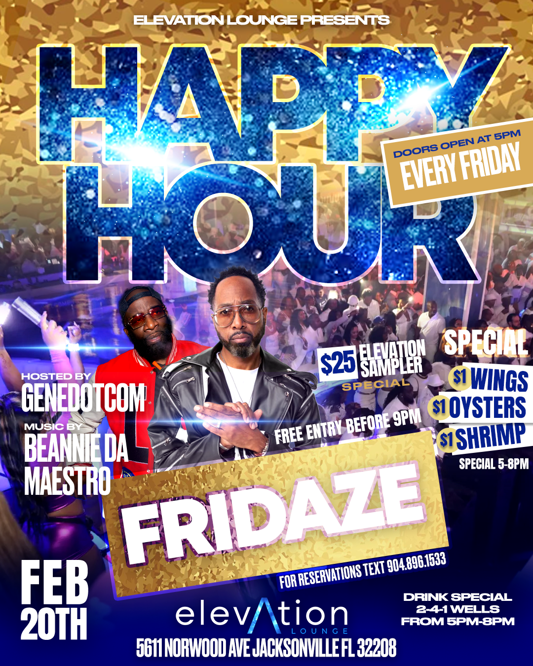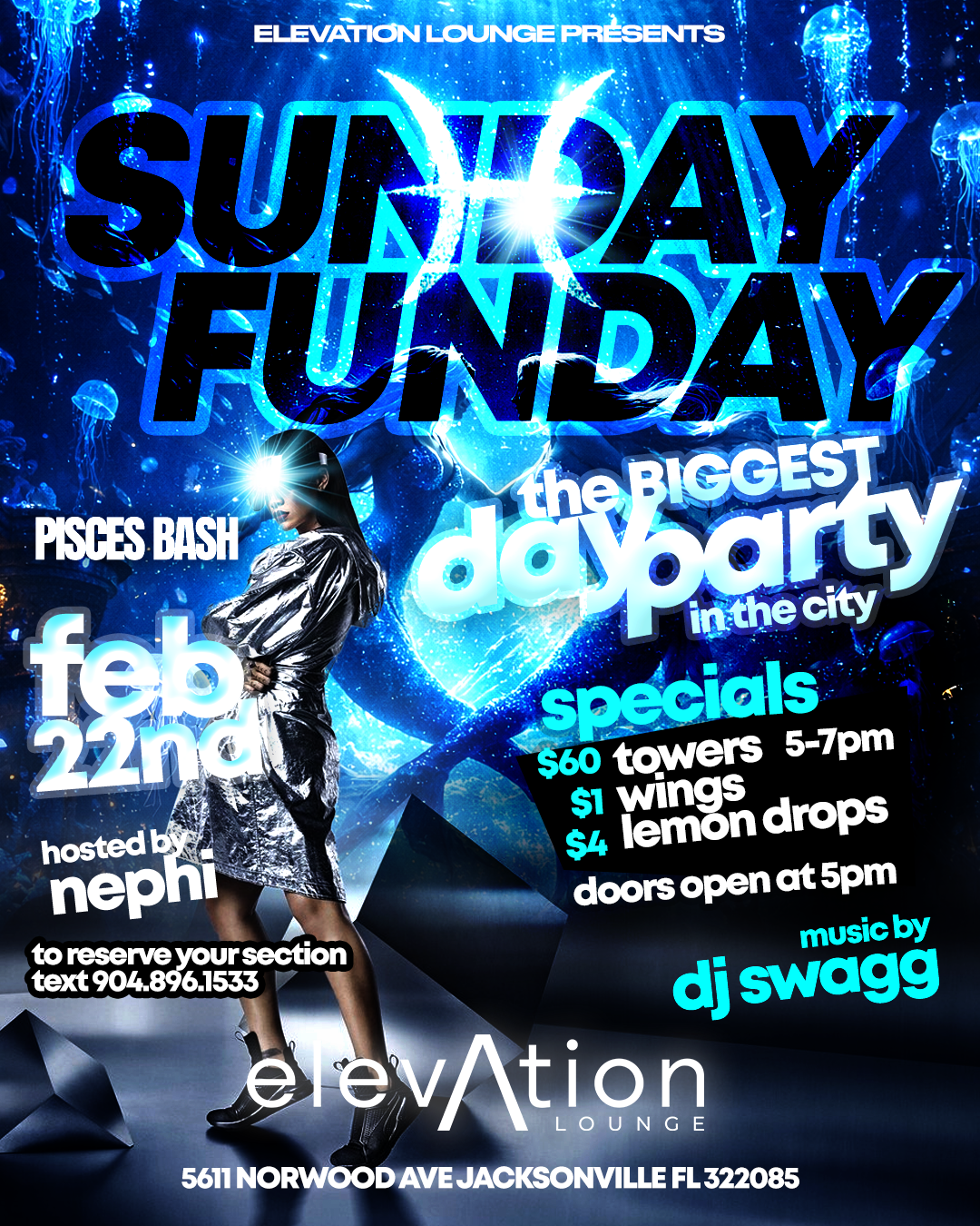 For private event planning, email admin@elevationjax.com with the following details. Date, Estimated number of guests and we'll help create the ultimate experience at Elevation.